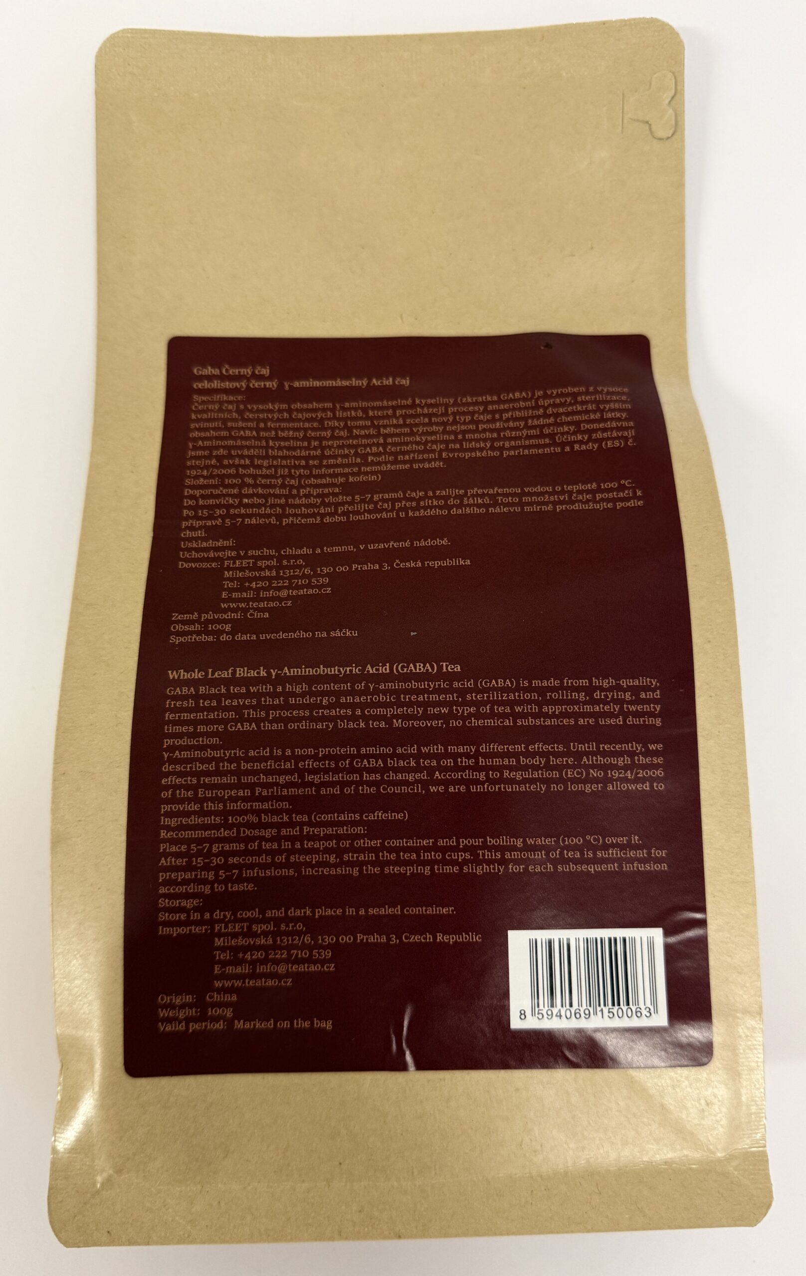 Černý čaj s vysokým obsahem gamma – aminomáselné kyseliny (zkratka GABA) je vyroben z vysoce kvalitních čerstvých čajových lístků, které procházejí procesem anaerobní úpravy, sterilizace, svinutí, sušení a fermentace, čímž se tento čaj stává zcela novým typem výrobku, který má dvacetkrát větší obsah GABA než obyčejný černý čaj a navíc, tento čaj se během výrobního procesu nesetká s žádnými chemickými reakcemi.